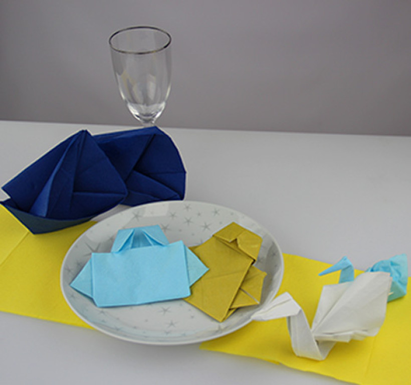 En plus, vous pouvez facilement réaliser ces pliages à partir de serviette en papier : simple et économique ! Il est même possible de faire participer d’autres proches de l’enfant comme le parrain ou la marraine.