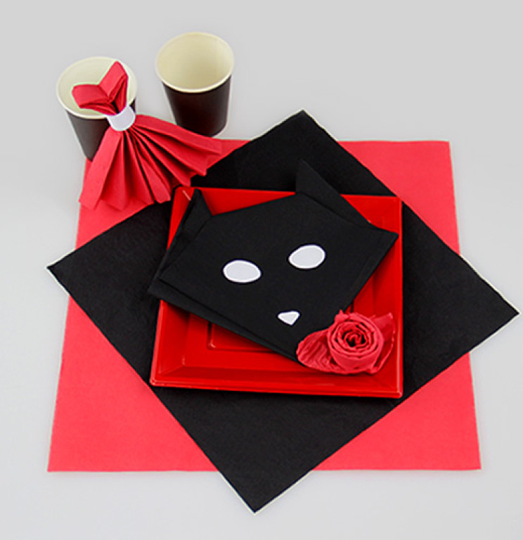 On peut facilement imaginer un pliage en forme de loup, en forme de champignon, et pourquoi pas, même, en forme de petite fille ? Optez pour une serviette rouge, et le tour est joué.