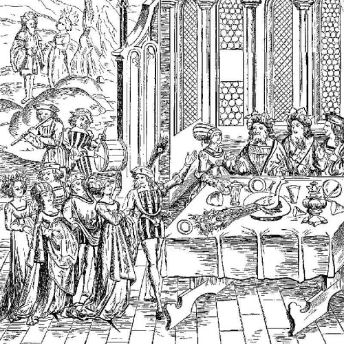 Au Moyen-âge, la nappe fit son apparition aux tables des nobles et des Seigneurs. Blanche et longue jusqu’au sol, elle était utilisée pour s’essuyer la bouche et les mains au cours du repas. Plus tard, l’ancêtre de la serviette fit son apparition, désigné sous le nom « longère ». Lorsqu’on dressait une table de banquet, on pliait alors la nappe en deux et on la recouvrait sur les bords d’une pièce de tissu, la « longère », qui servait à s’essuyer les mains et la bouche tout au long du banquet.